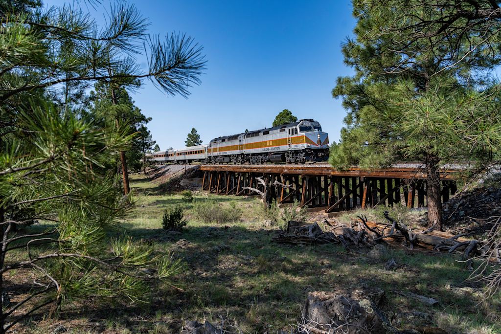 There’s something undeniably magical about approaching the Grand Canyon by rail. The train offers a contemplative journey that builds anticipation as high desert gives way to towering ponderosa pines, until, at last, you’re met with the breathtaking spectacle of the South Rim vista.