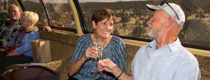 Every detail along the journey—from polished wood interiors to onboard refreshments—adds to the sense of nostalgia and adventure. Guests looking to elevate their experience can choose Luxury Parlor Class, where champagne is served on an open-air rear platform as the train winds through the scenic high desert. It’s a memorable way to toast a truly grand adventure.